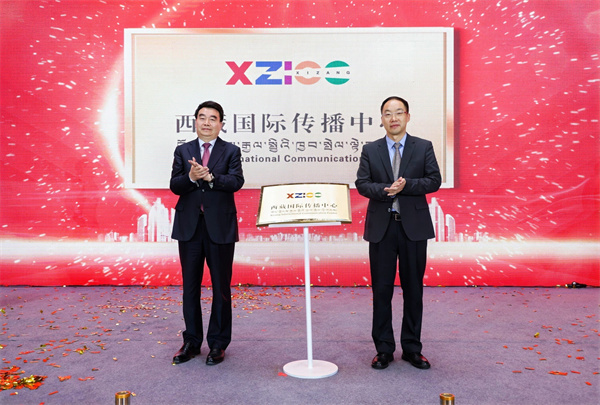 汪海洲與于運全為西藏國際傳播中心揭牌