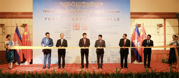 中柬嘉賓共同為圖片展開幕式剪彩