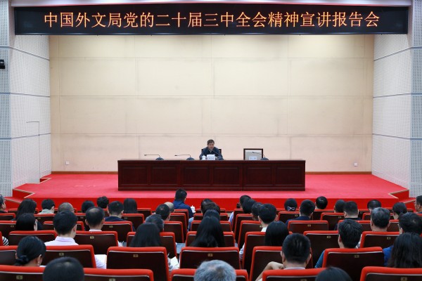 9月27日,中國外文局召開黨的二十屆三中全會精神宣講報告會,局長杜占元以專題黨課形式為全局黨員、干部作題為《深入學習貫徹黨的二十屆三中全會精神,構建更有效力的國際傳播體系》的宣講報告。副局長于濤主持會議,副局長劉大為、于運全出席。