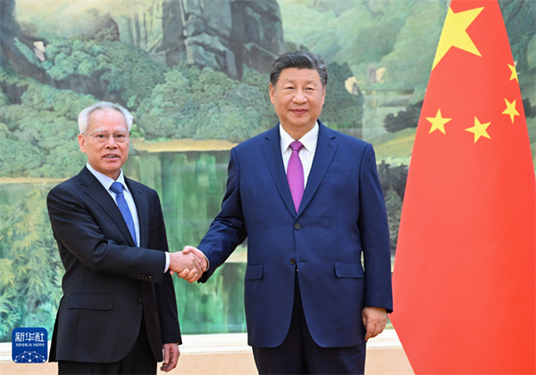 11月1日下午,國家主席習近平在北京人民大會堂會見新當選并獲中央政府任命的澳門特別行政區第六任行政長官岑浩輝。(新華社記者 丁海濤 攝)