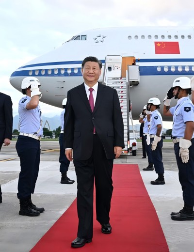 當地時間11月17日下午,國家主席習近平乘專機抵達里約熱內盧,應巴西聯邦共和國總統盧拉邀請,出席二十國集團領導人第十九次峰會并對巴西進行國事訪問。