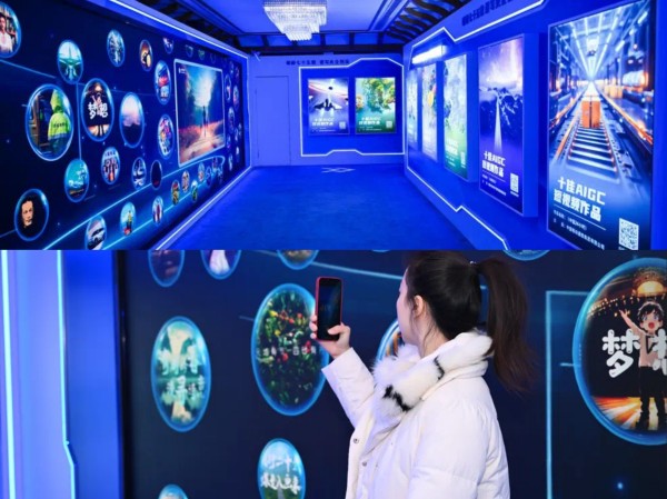 展覽還設置了AIGC互動展區,通過中國外文局AI視界工作室“共智伙伴計劃”,將智能機器人、數字人倉、智能相機、音樂播放器等AI硬件與央企AIGC作品進行深度融合,讓觀眾親身體驗人工智能創作樂趣。此外,為展現央企成就、突出央企元素,展館設置了央企特裝展區,央企代表展出了在人工智能領域的最新裝備、前沿案例。本次展覽是首屆AIGC創意傳播作品發布展的配套活動,同步開展優秀作品線上展播。