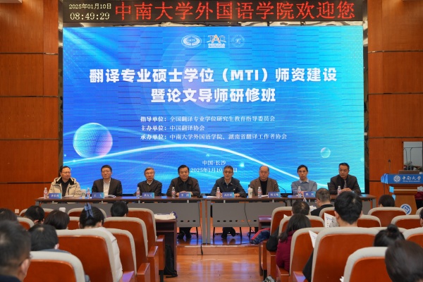 1月10日,翻譯專業碩士學位(MTI)師資建設暨論文導師研修班在湖南長沙開班。來自中南大學、湖南大學、湖南工業大學、湖南科技大學、湖南工商大學、長安大學、內蒙古大學、吉首大學、合肥工業大學、華東交通大學、南方醫科大學等高校的近50位MTI教育負責人及骨干教師參加研修。