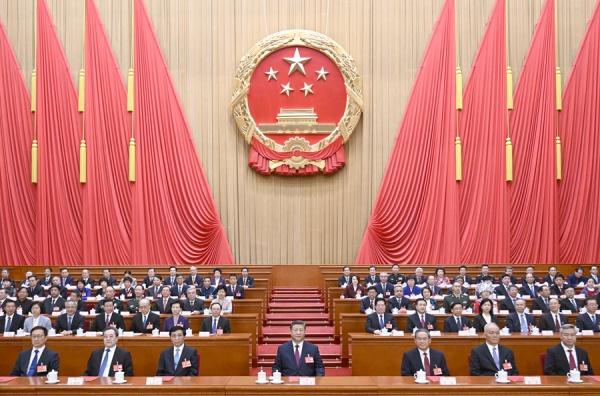 習近平、李強、王滬寧、蔡奇、丁薛祥、李希、韓正和大會主席團成員在主席臺就座。
