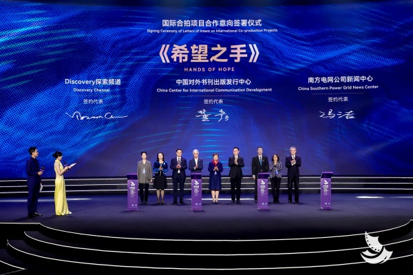 開幕式上,中國外文局副總編輯、中國對外書刊出版發行中心(國際傳播發展中心)主任陳實,福建省廣播電視局局長王中,中國外文局綜合業務部一級巡視員黃衛,福建省委宣傳部副部長陳勇,福建省廣播影視集團總經理劉用通,福建省人民政府外事辦公室副主任黃劭蓉共同見證《尋找日意格》《希望之手》《東方的河》《勺嘴鷸的奇跡飛行》等中外合拍紀錄片項目合作意向簽署。