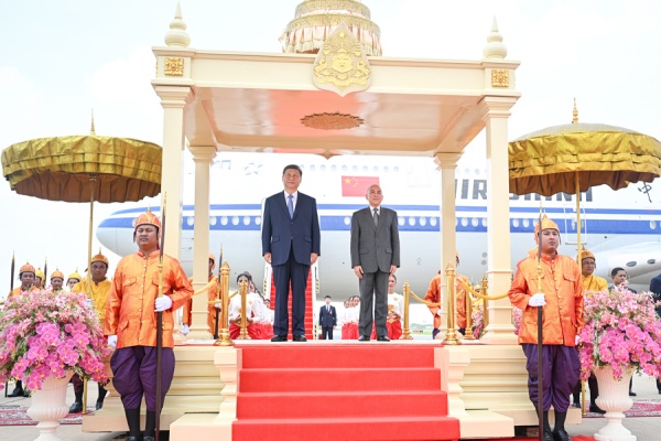 當地時間4月17日上午,國家主席習近平乘專機抵達金邊,應柬埔寨國王西哈莫尼邀請,對柬埔寨進行國事訪問。