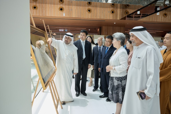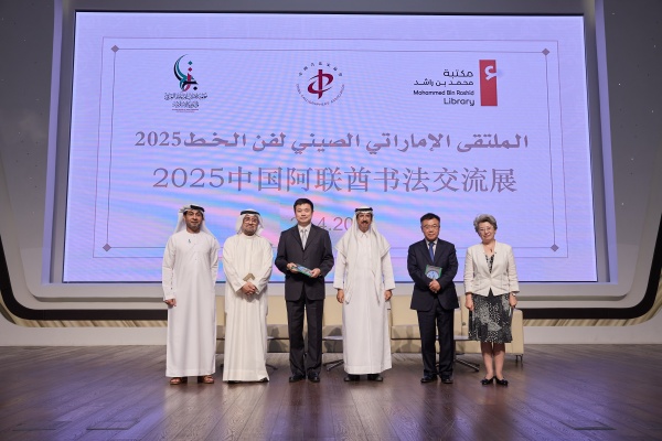當地時間4月29日,“2025中阿書法交流展暨漢字之美·中國古代哲人的沉思與當代書家的表現書法展”在阿聯酋迪拜開幕。中國外文局副局長劉大為,中國駐迪拜總領事歐渤芊,中國文聯書記處書記、中國書法家協會駐會副主席李昕,迪拜穆罕默德·本·拉希德圖書館館長穆罕默德·穆爾,阿聯酋阿拉伯書法與伊斯蘭裝飾藝術協會會長哈立德·賈拉夫出席并致辭。來自中國、阿聯酋、埃及、敘利亞、伊朗、印度等多個國家的60余位藝術家攜作品參展,以及媒體、智庫、新聞出版、教育等各界人士共百余人參加了開幕活動。