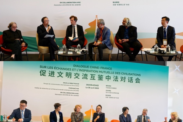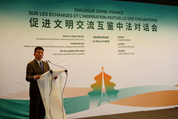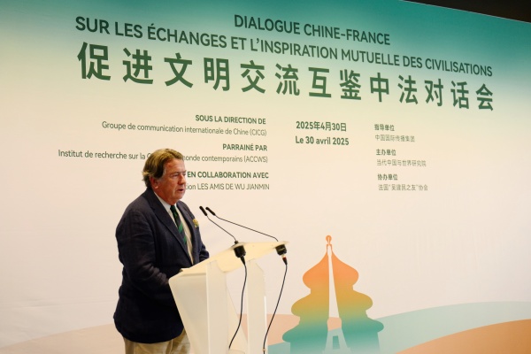 當地時間4月30日,“促進文明交流互鑒中法對話會”在法國巴黎舉辦。對話會以“和平發展與文明互鑒”為主題,由中國外文局指導,當代中國與世界研究院主辦,法國“吳建民之友”協會協辦,來自中法兩國地方政府、學術團體、出版機構、文化藝術界代表等80多人參加活動。
