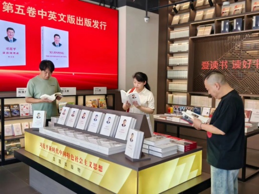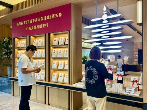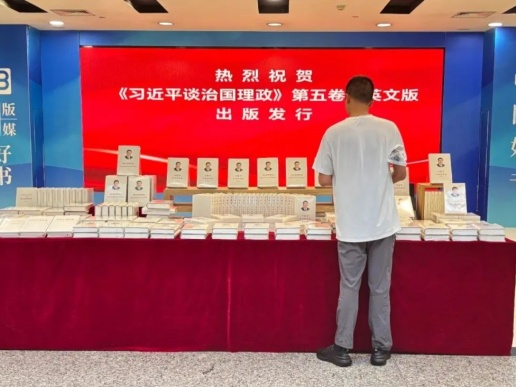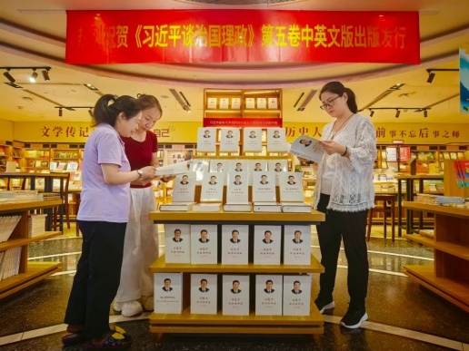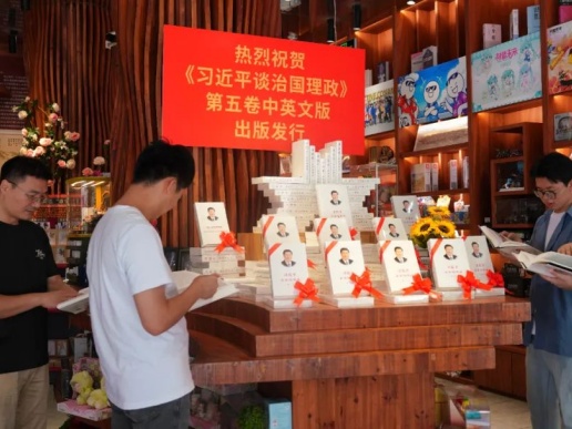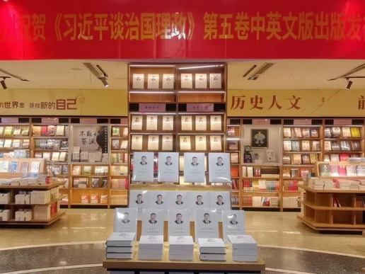 以下為《習近平談治國理政》第五卷中英文版圖書在北京、廣東、浙江、福建、四川、西藏、香港、澳門主要書店上架銷售及讀者閱讀的場面。