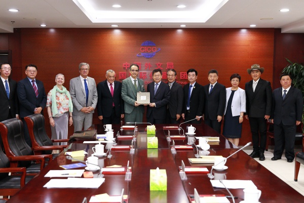 5月22日上午,中國外文局局長、第二屆蘭花獎評委會主任委員杜占元會見到訪的第二屆蘭花獎外籍評委一行。中國外文局副局長、第二屆蘭花獎評委會副主任委員于濤,中國外文局副總編輯、中國對外書刊出版發行中心主任、蘭花獎秘書處秘書長陳實參加會見。