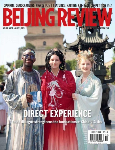 《北京周報》第32期封面報道聚焦中美青年交流。7月7日至23日,“知東匯西:中美青年共話未來”活動中,25位大學生赴北京、西安、蘇州和上海進行參訪與對話交流。