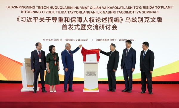 當地時間8月19日,《習近平關于尊重和保障人權論述摘編》烏茲別克文版首發式暨交流研討會在烏茲別克斯坦首都塔什干舉行。