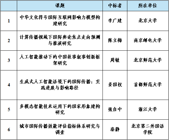 2025年中國外文局國際傳播研究課題招標和評審工作已告一段落,按工作流程,現將國際傳播大數據智能實驗室課題中標結果公示如下: